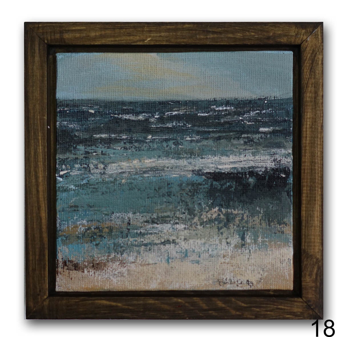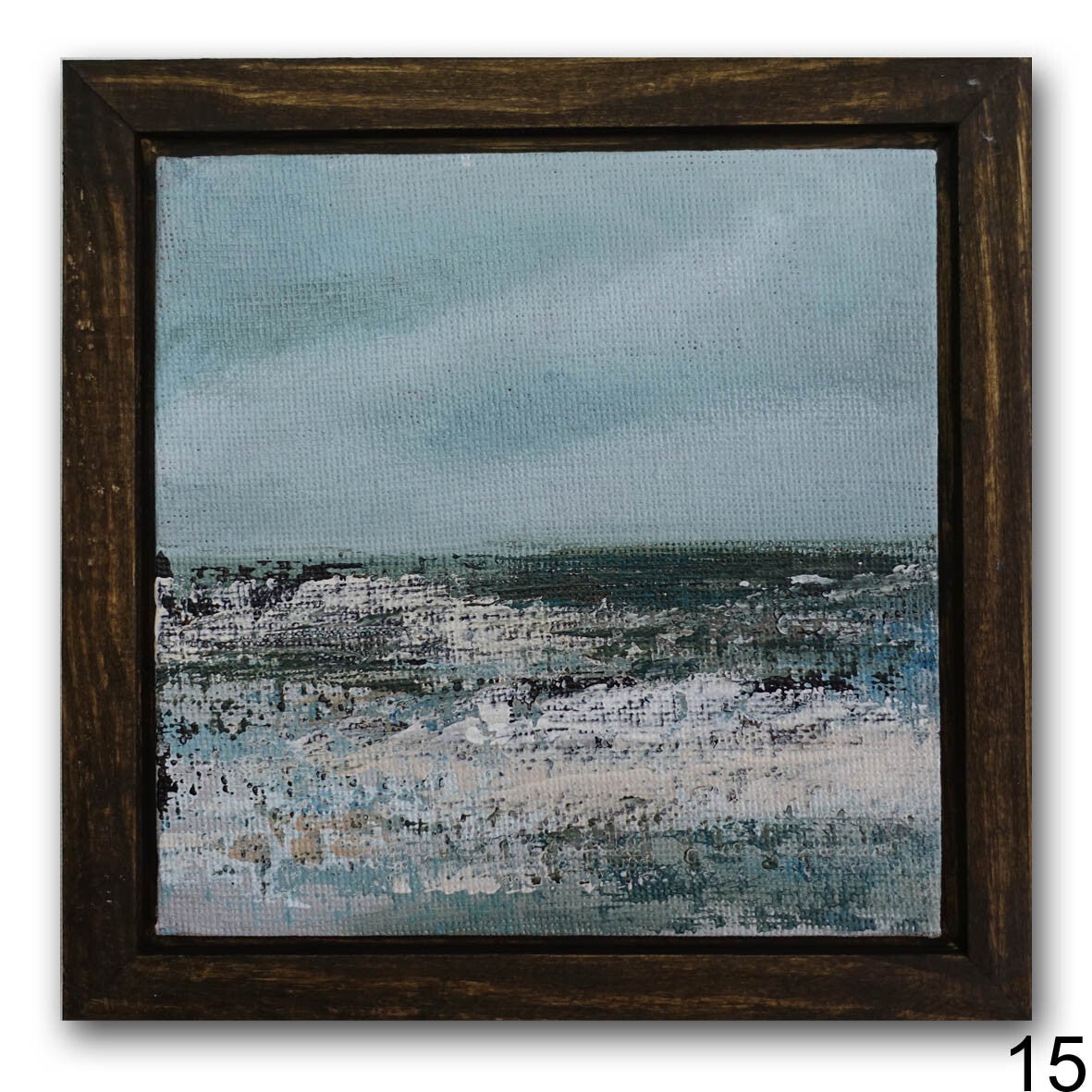 De schilderijtjes hebben een afmeting van 15,5 x 15,5 cm en zijn te koop bij Galerie Plein 1890 op Urk.