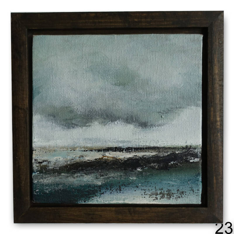 Onlangs heb ik een dertig dagen project afgerond. Dertig dagen lang maakte ik elke dag een klein schilderijtje met het thema 'Horizon" en plaatste de foto op Instagram.  Ze zijn geschilderd met verschillende media: olieverf, acrylverf of een combinatie van olieverf met bijenwas (encaustic). In enkele is in de achtergrond een stukje van een oude zeekaart verwerkt.